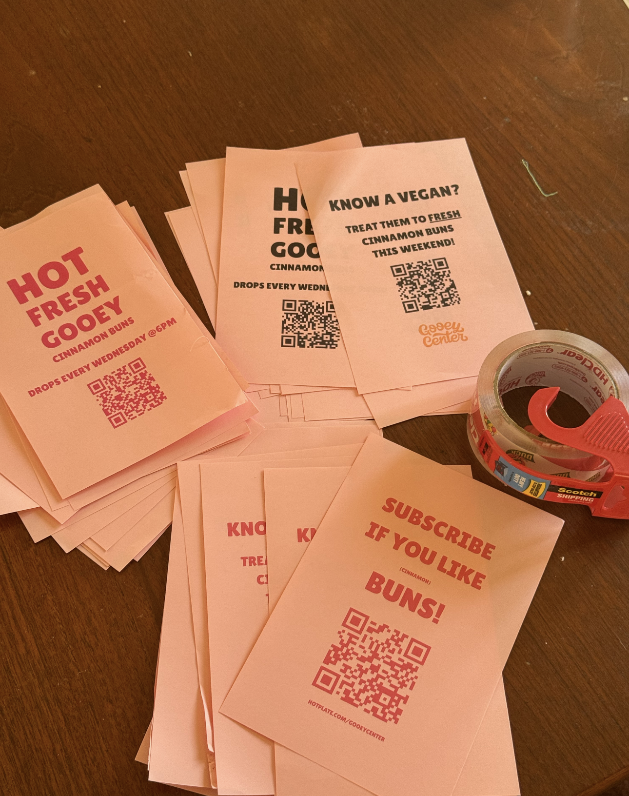 Business cards are an old school but effective way to connect with potential collaborators or customers. The most successful Hotplate chefs also include their Hotplate storefront url and a QR code that links to their subscriber sign up or link in bio. Keep a stack of them in your car, stuff your pockets, or staple them to samples - it’s always a good idea to have one on you.