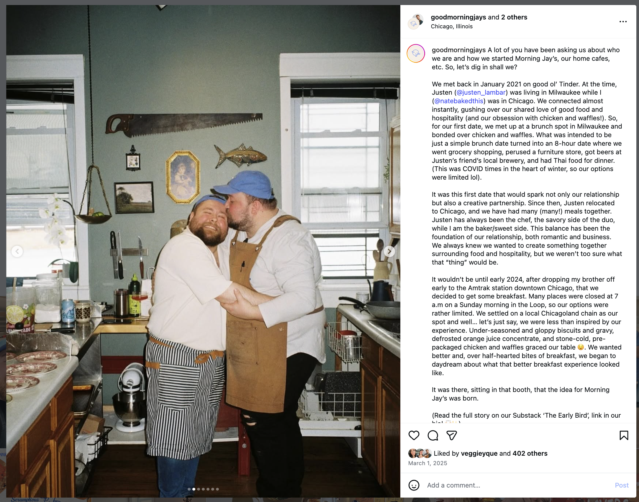 A great way to turn page visitors into future customers is to share a post about you and the story of your business. Sharing about yourself is how you build a community around your food and keep customers coming back. Plus, these kinds of posts always tend to get a little more engagement on social, which is always a win.